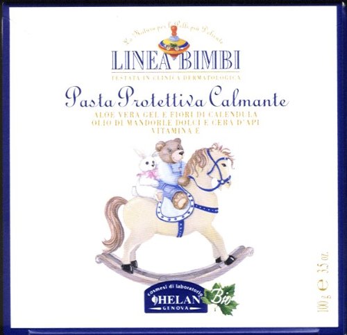 HELAN SOOTHING PROTECTIVE DIAPER CREAM has been specifically formulated to block wetness and protect your baby's skin in the delicate diaper area. Enriched with Sweet Almond oil and Beeswax it is softening and lubricating. It contains Aloe Vera gel and Marigold extract which make it soothing and calming. The hydrating action covers and protects specifically designed to avoid rashes, irritations and chapping in baby's delicate skin folds. 3.5 oz. (100 g)
